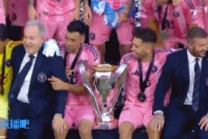 完美谢幕!布斯克茨与阿尔巴坐一起与奖杯合影,身旁是老板